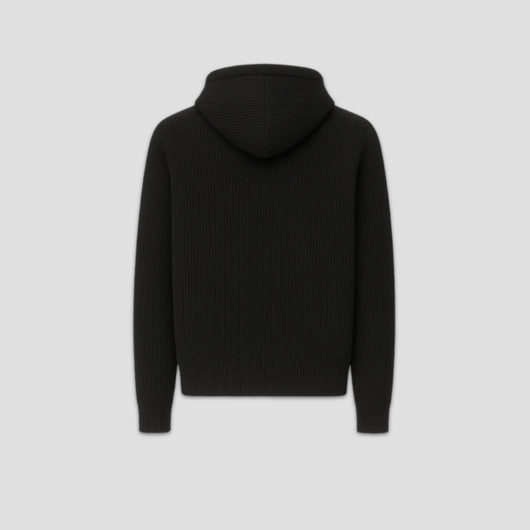 Ett tidlöst uttryck för modern minimalism. Tillverkad av en tät, ribbad bomullsknits, ger den en ren siluett som kombinerar komfort, hållbarhet och subtil elegans. Den strukturerade luvan och den tunga metallblixtlåset ökar dess dagliga mångsidighet, medan den förfinade stickade texturen tillför djup och karaktär. Perfekt för enkel lager-på-lager-stil och smidiga övergångar från dag till kväll.