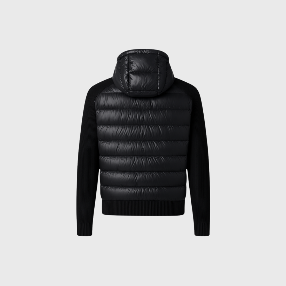 The Vexon Puffer Knit Hoodie redefines everyday outerwear with a balance of warmth and sleek design. Featuring a glossy, lightweight padded body paired with rib-knit sleeves and trims, it delivers both comfort and structure. The double-zip front and adjustable hood add versatility, while the deep black finish keeps it sharp and timeless. Perfect for layering through chilly days or elevating your casual street look.