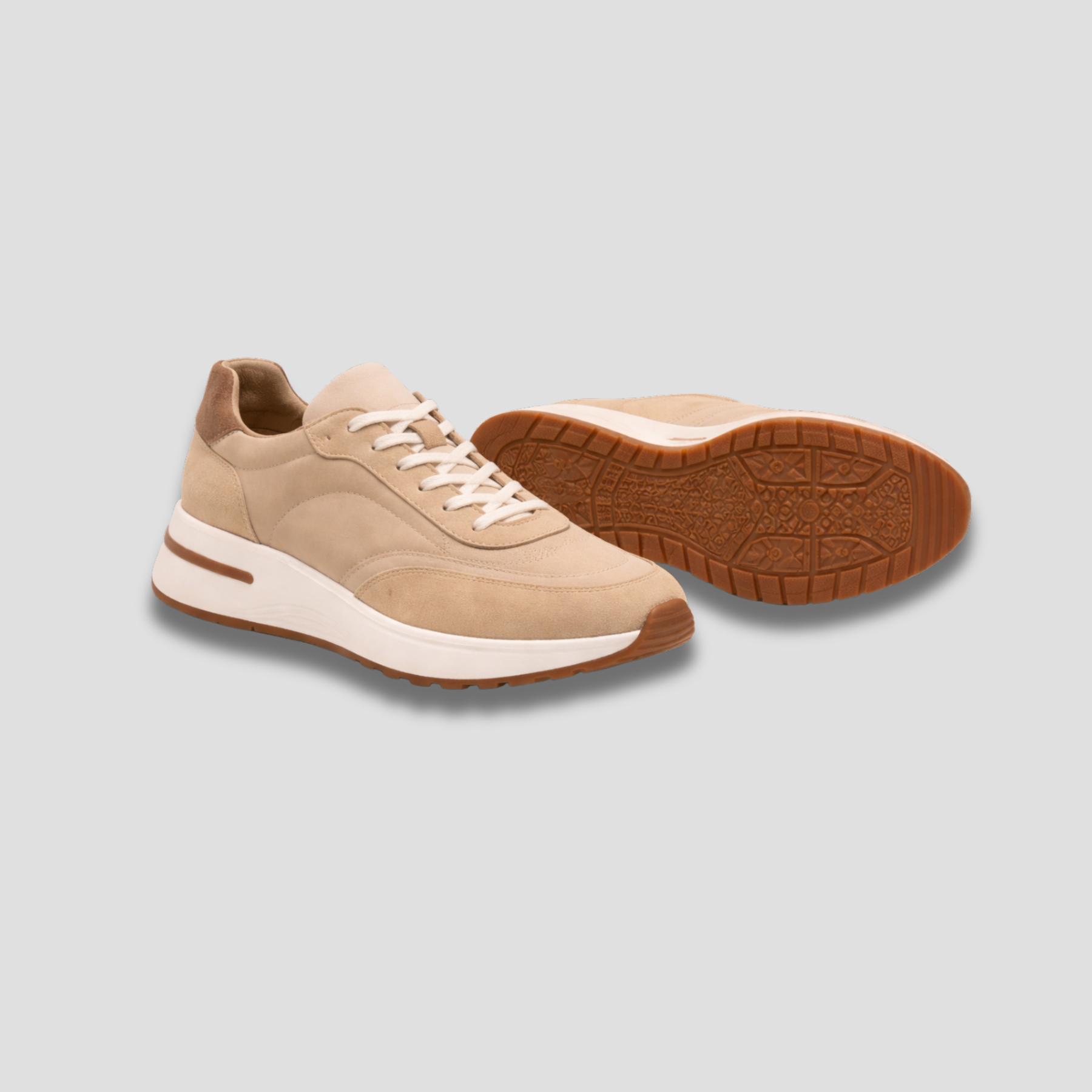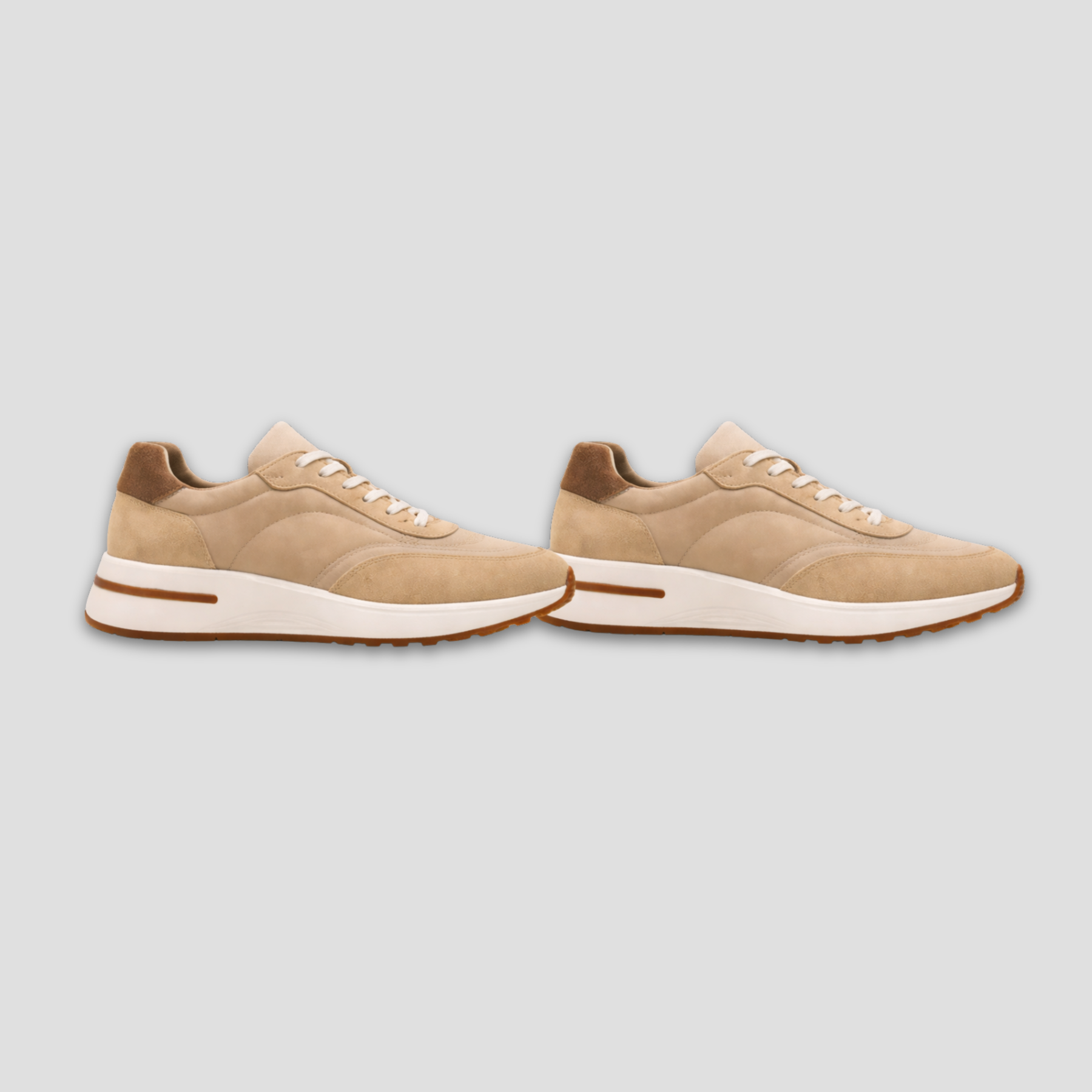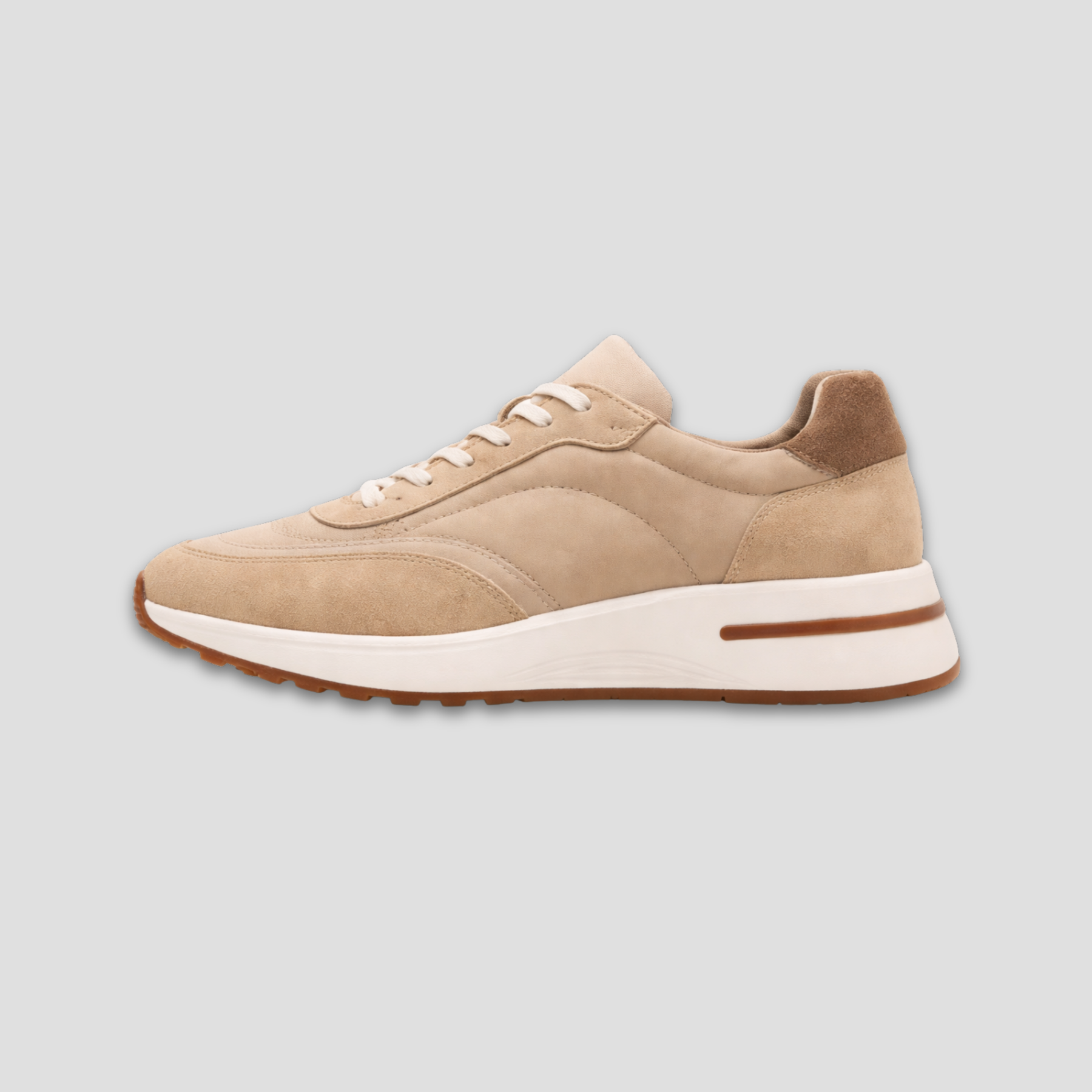 This casual runner sneaker is designed for everyday comfort with a modern and clean silhouette. Made with a combination of smooth fabric and suede overlays, it provides a premium yet durable feel. The lace-up construction ensures a secure and adjustable fit for daily movement. A cushioned midsole and rubber outsole offer stability, comfort, and traction throughout the day. Perfect for casual wear, this sneaker blends sporty design with versatile style.